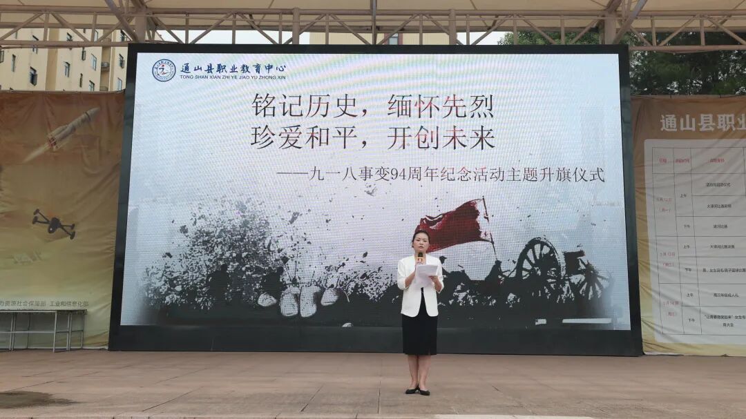 副校长曹露发表题为《铭记历史,以青春之力担时代之责》的主题讲话。她强调,必须铭记九一八的屈辱与苦难,牢记先辈的抗争与“落后就要挨打”的深刻教训。她指出:“铭记历史,最好的方式就是将‘落后就要挨打’的警醒,化为‘强国有我’的行动!”她鼓励全体同学珍惜时光,锤炼扎实技能,在团队协作中成长,将个人理想融入国家发展的洪流,做有担当、能奋斗的新时代职教青年。