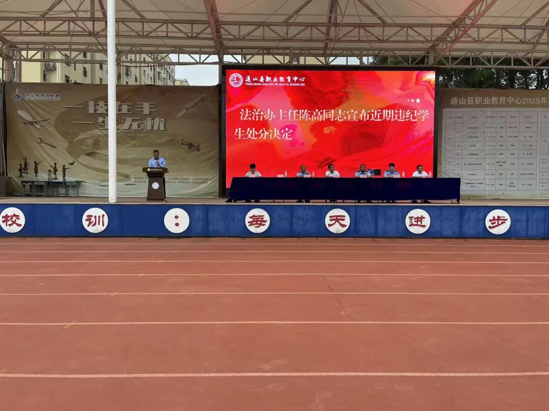 首先,法治办主任陈高宣读了近期严重违反校纪校规的三份处分决定,强调全体同学要从中吸取教训,警醒自己,规范自己的言行,做一名合格的中职学生。