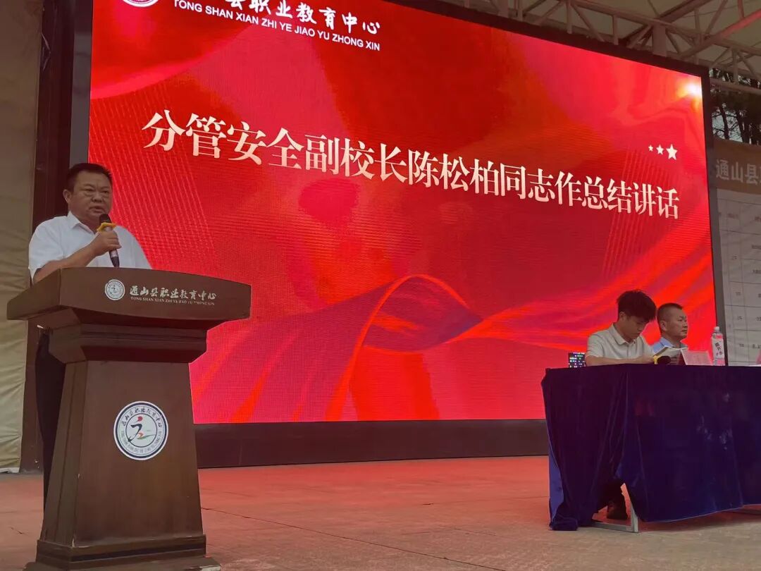 最后,副校长陈松柏同志作总结发言,他提醒学生防范日常学习生活中容易导致违纪的六个方面,同时对全体同学提出了三个具体要求。希望所有学生能将今天的所学、所感、所悟内化于心,外化于行,树立正确的职业观、价值观、人生观,在遵纪守法的基础上,不断提高专业技能,拓展专业能力,用法纪规范自己的言行,用技能点亮自己的人生。